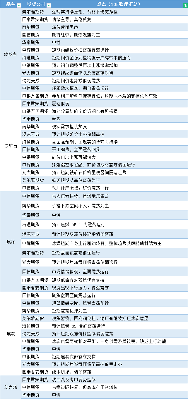 标题:期货公司观点汇总一张图:2月14日黑色系(螺纹钢、焦煤、焦炭、铁矿石、动力煤等)