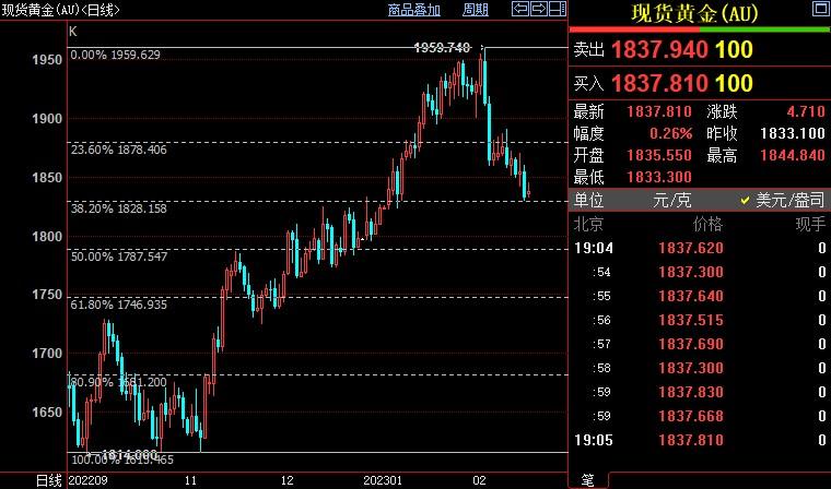 北京时间20:08, 现货黄金 上浮0.06%至1836.95美元/盎司;COMEX期金主力合约上浮0.07%至1846.5美元/盎司; 美元指数 下跌0.17%至103.688。
