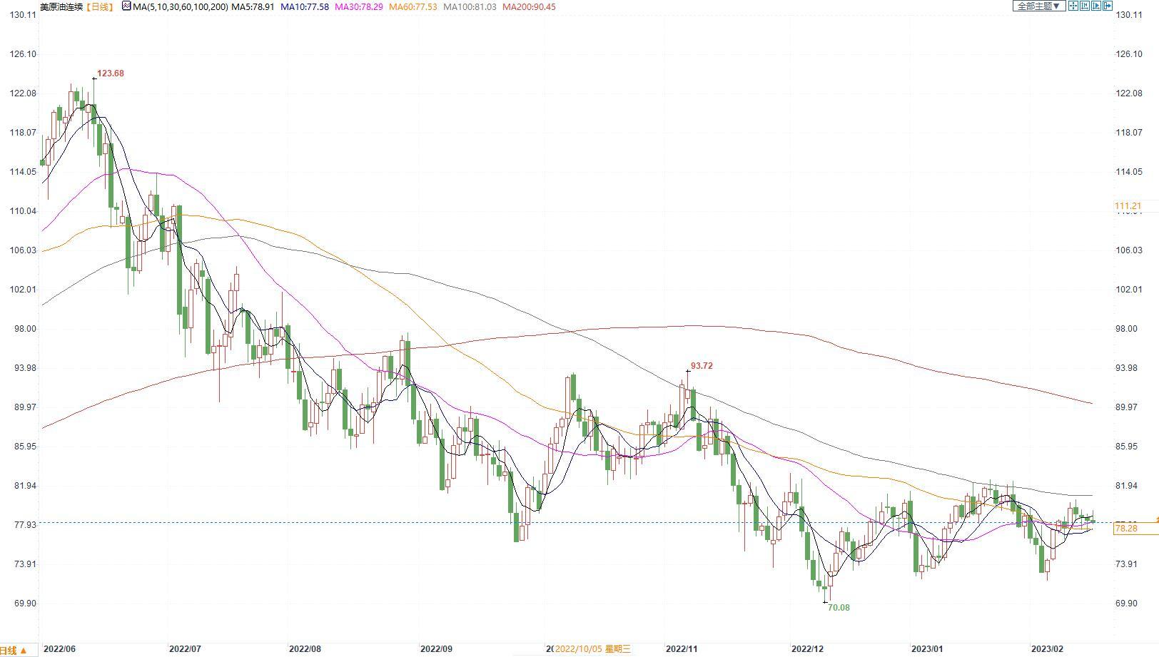 期货市场,布油目前区间震荡为主,关注下方40日均线的支撑情况。国内SC2304合约涨超2%,收盘价574.2。