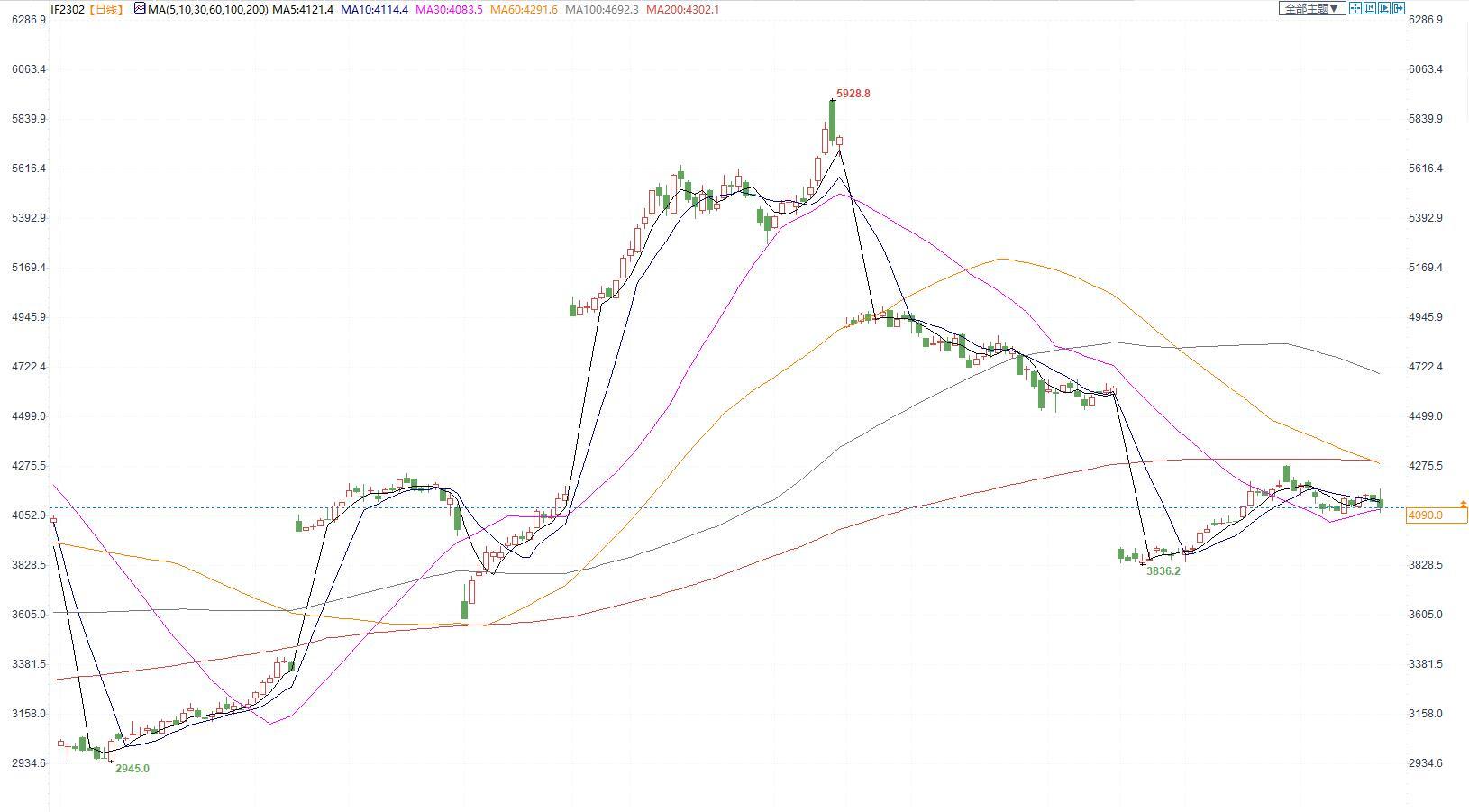 【今日涨跌】四大期指全线收跌。IH2302收盘价为2741.8,收跌0.40%;IF2302收盘价为4090,收跌0.70%;IC2302收盘价为6272.2,收跌1.57%;IM2303收盘价为6909.2,收跌1.66%。