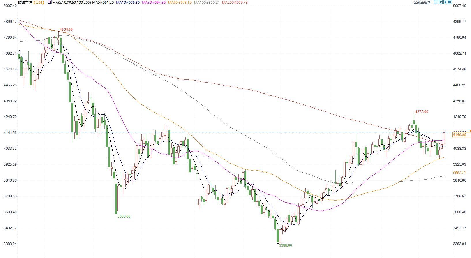 价格:受最近需求端改善的提振作用,螺纹钢2305合约今日明显走强。日K收大阳线,收盘价4146元/吨,较上一交易日上涨85点,收涨2.09%。现货价格明显回升,上海中天现货价4180元/吨,环比增40元/吨。