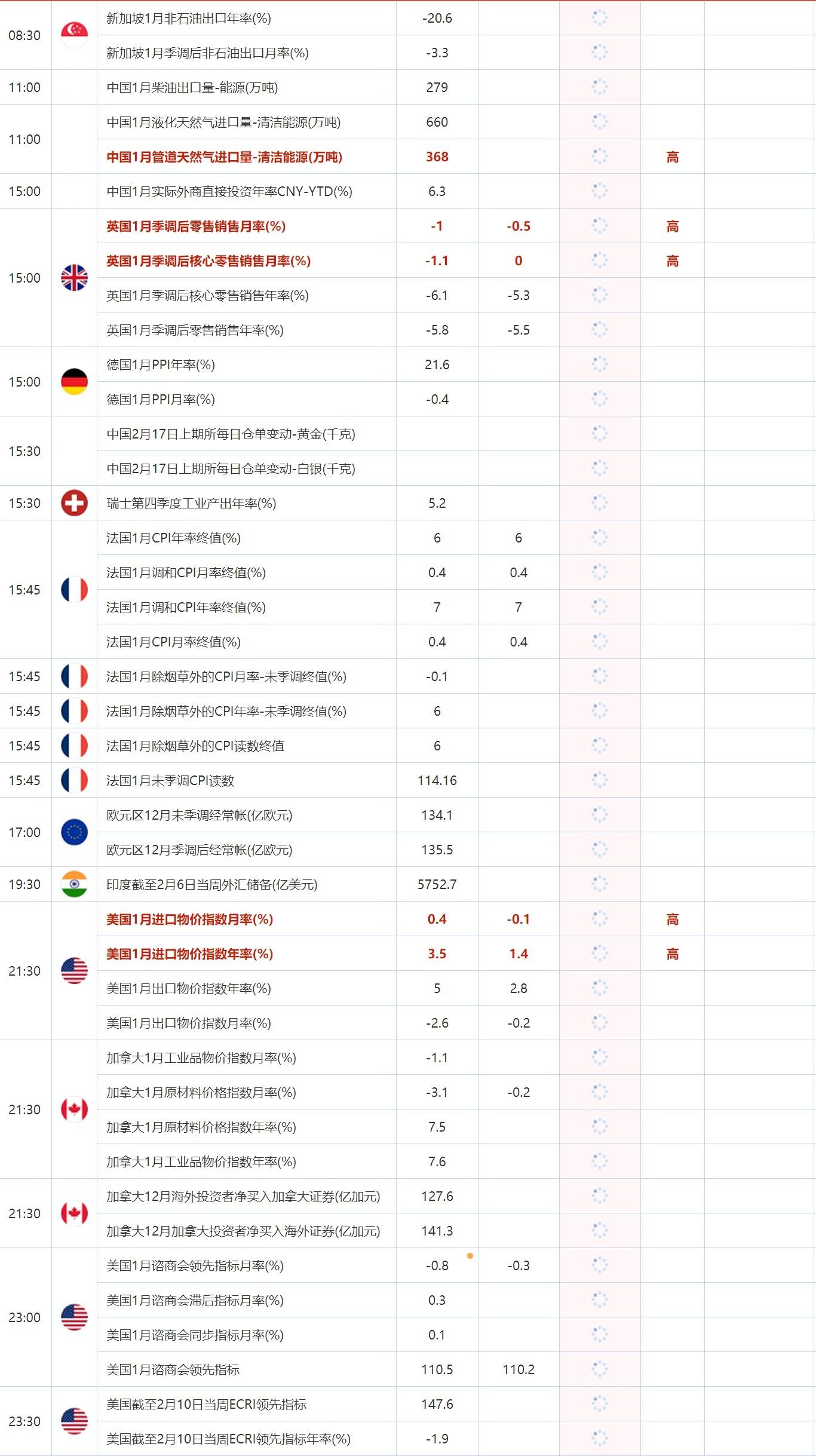 2月17日重点数据和大事件前瞻
