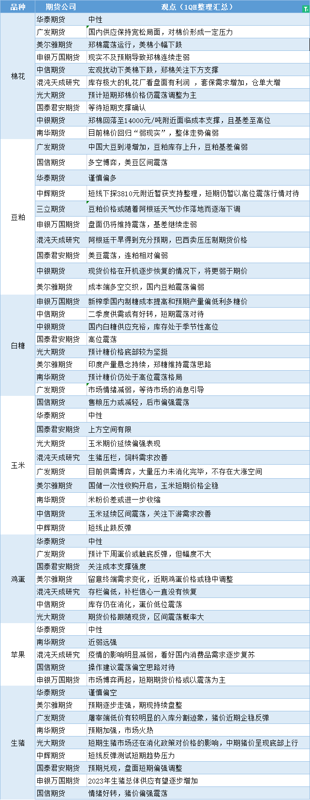 标题:期货公司观点汇总一张图:2月20日农产品(棉花、豆粕、白糖、玉米、鸡蛋、生猪等)