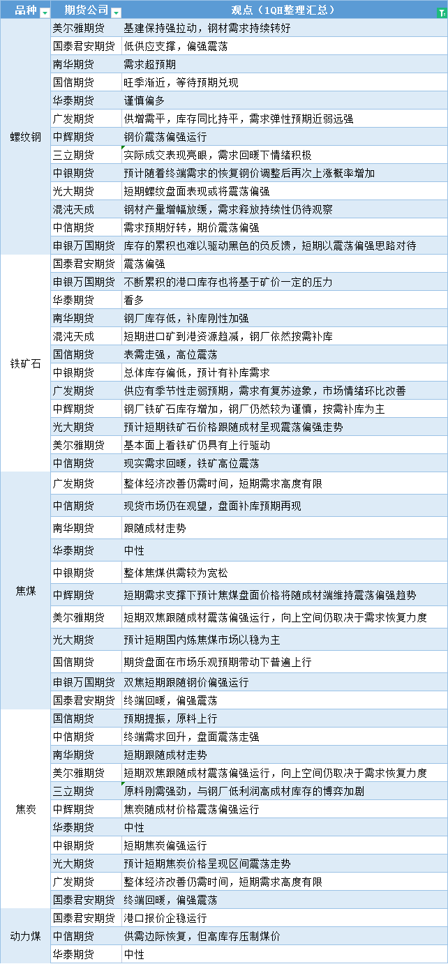 标题:期货公司观点汇总一张图:2月20日黑色系(螺纹钢、焦煤、焦炭、铁矿石、动力煤等)