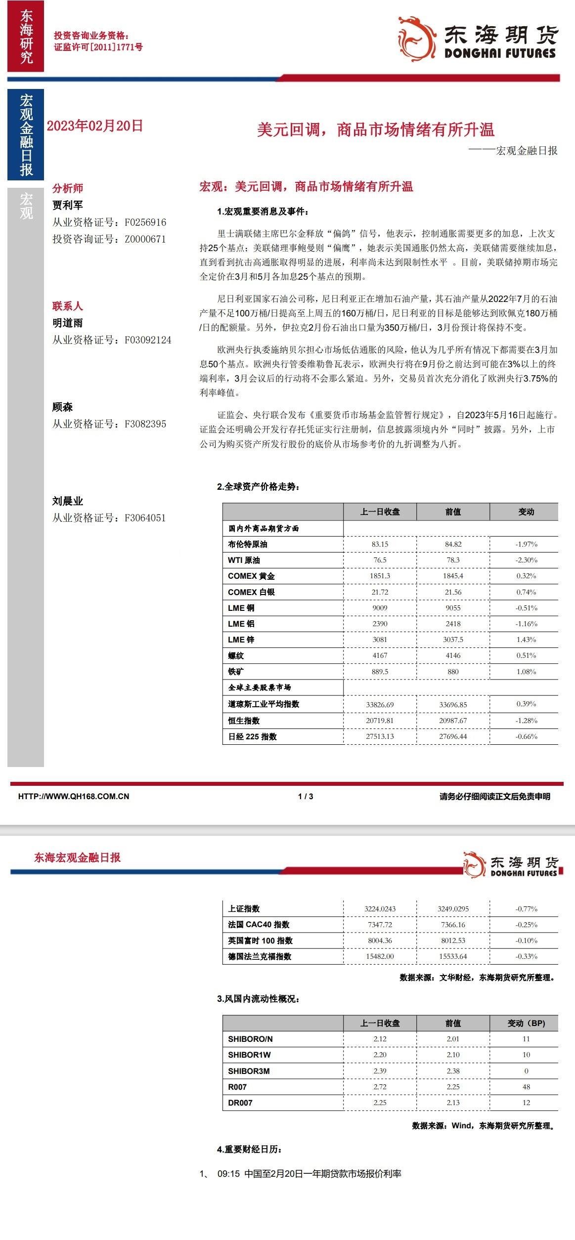 【东海期货2月20日宏观金融日报】:美元回调,商品市场情绪有所升温