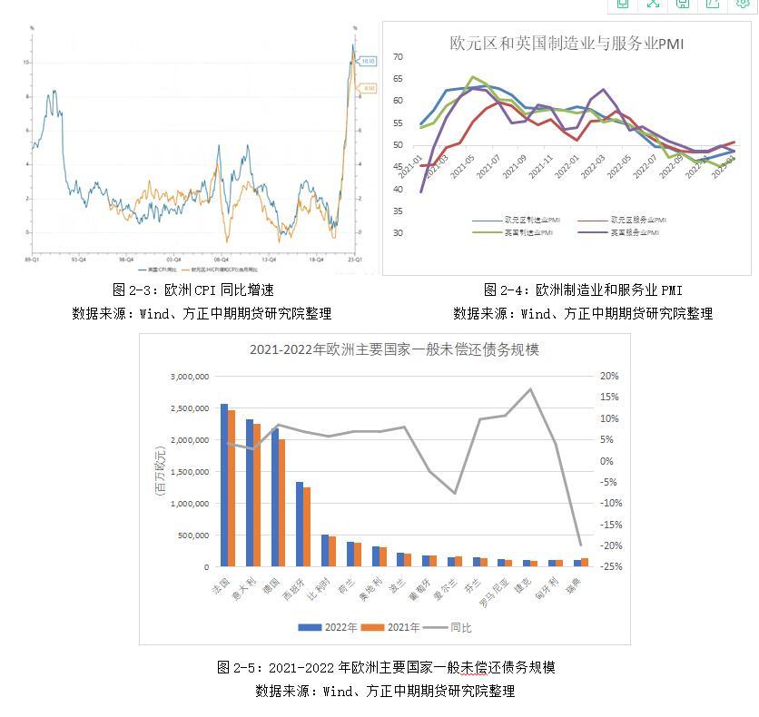 欧洲民众的罢工诉求正中欧洲当前的痛点问题。虽然欧洲通胀明显放缓,但是总体依然处于历史高位,1月欧元区和英国的CPI同比增速分别录得8.5%和10.1%,欧洲民众的生活成本持续攀升。欧洲深陷债务危机,截至2022年底,欧元区一般未偿还债务规模达到10.35万亿欧元,同比扩大5.1%。其中,德国和法国达到2.18和2.56亿欧元,同比扩大8.5%和4.1%。持续罢工游行导致工厂和商铺无法正常开工运营,对于欧洲产业发展造成明显影响。1月欧洲制造业继续萎缩,欧元区和英国制造业PMI分别录得48.8和47;服务业方面,英国PMI录得48.7,仅欧元区在时隔半年后重返荣枯线以上。