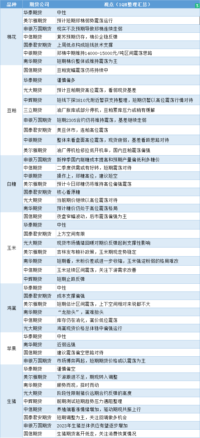 标题:期货公司观点汇总一张图:2月21日农产品(棉花、豆粕、白糖、玉米、鸡蛋、生猪等)