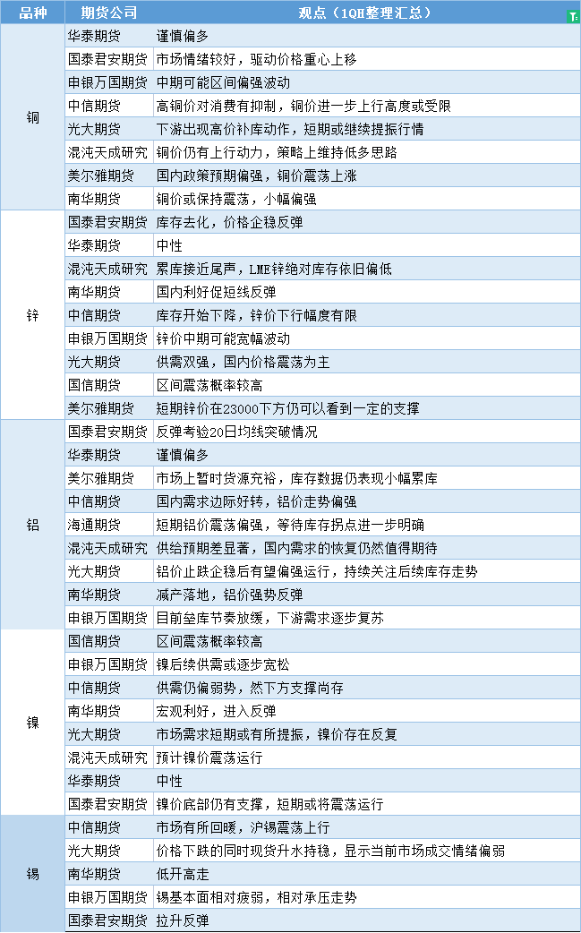 标题:期货公司观点汇总一张图:2月21日有色系(铜、锌、铝、镍、锡等)