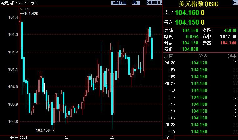 北京时间20:27, 现货黄金 上涨0.41%至1842.57美元/盎司;COMEX期金主力合约上涨0.49%至1851.5美元/盎司; 美元指数 下跌0.04%至104.162。