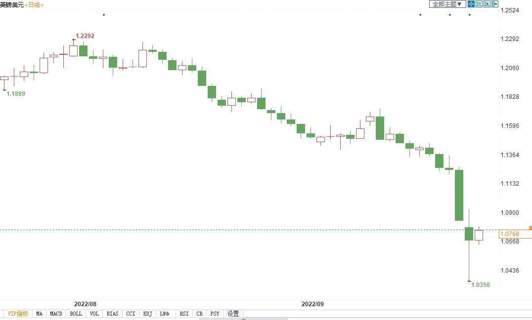 北京时间9月27日13:14, 英镑兑美元 报1.0768/70。