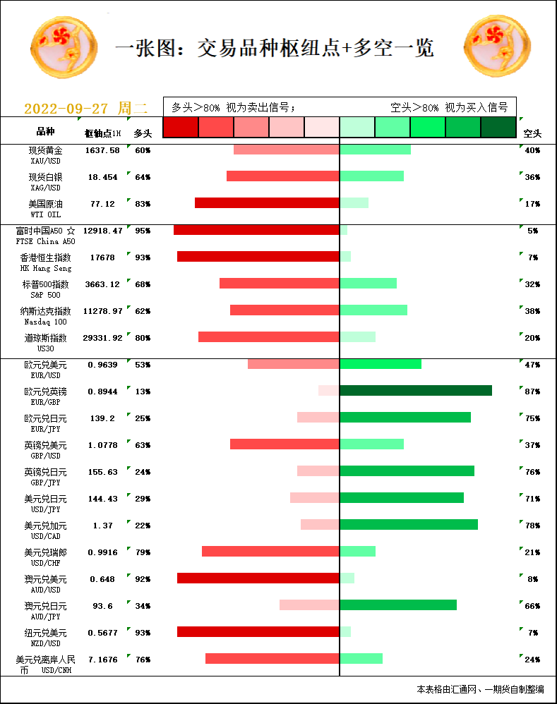 标题:一张图:9月27日黄金白银、原油、股指、外汇“枢纽点+多空信号”
